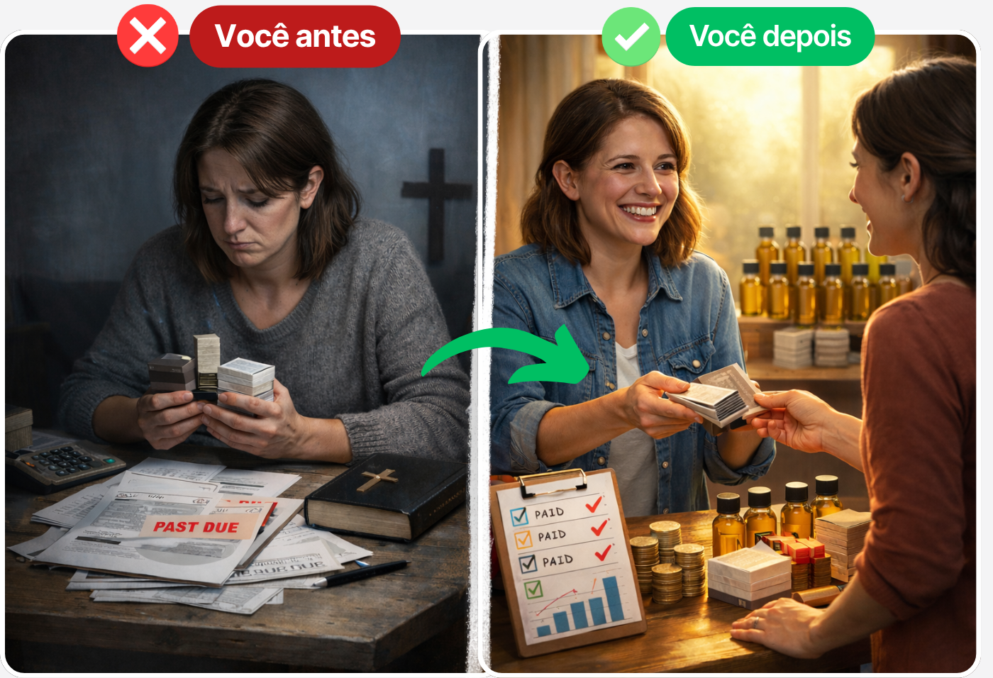 Depois de entender o valor do que você tem e se inspirar nas histórias bíblicas, você vai parar de travar e começar a oferecer seu produto com leveza, confiança e propósito — sabendo que você está ajudando pessoas.