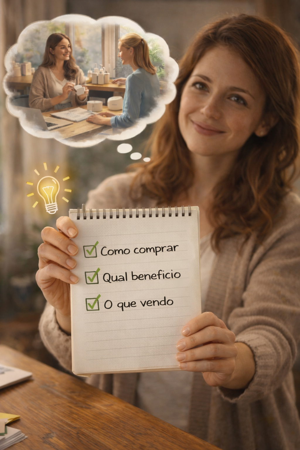 Mesmo com conhecimento técnico, ela não sabia vender. Tinha capacidade, tinha solução, mas travava — e muitas vezes via outras pessoas fazendo o mesmo: cobrando abaixo, não se posicionando ou simplesmente não vendendo.